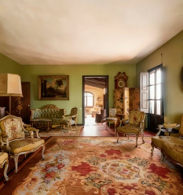 This historic estate offers three established buildings: a 17th-century farmhouse with an attached chapel and two large houses, all with independent entrances. An approved Municipal Plan allows for expansion to up to six residential units.