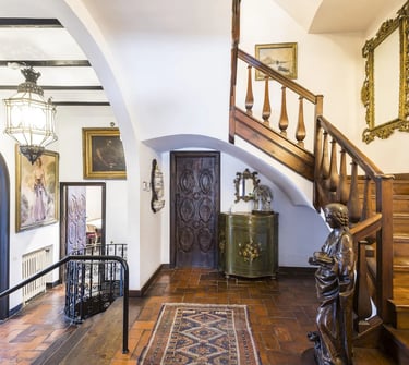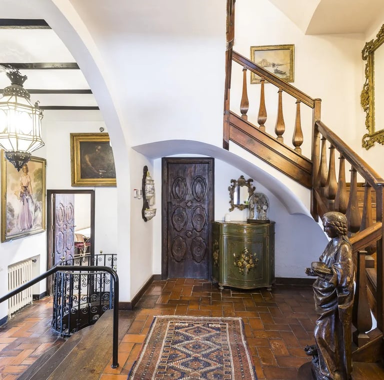 This historic estate offers three established buildings: a 17th-century countryhouse with an attached chapel and two large houses, all with independent entrances. An approved Municipal Plan allows for expansion to up to six residential units.